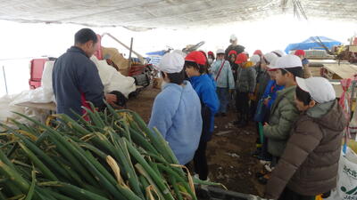 先週月曜日に、社会科見学としてネギ農家さんのお宅を訪問し、収穫から出荷までの作業工程を体験しました。