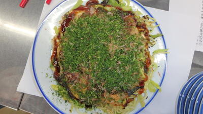 そして仕上げには、広島のお好み焼きらしく「そば」も加えました。そばが入ることで一層本格的な広島お好み焼きの味わいとなり、おいしそうに食べていました。