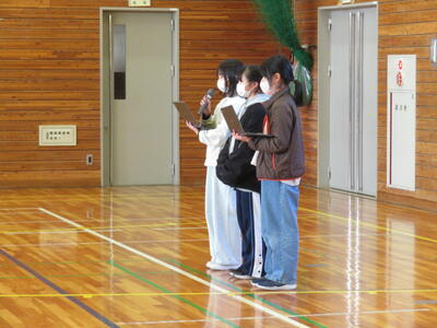 来年度の児童会役員選挙が行われ、児童会長1名、副児童会長2名が信任投票によって決まりました。立候補した3名の児童は、少し緊張しながらも、自分の思いや「こんな学校にしたい!」という願いを一生懸命に伝えていました。推薦責任者として登壇した児童も、候補者の良いところを温かい言葉で紹介し、会場の児童たちは静かに耳を傾けていました。